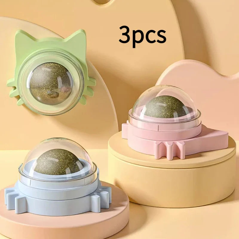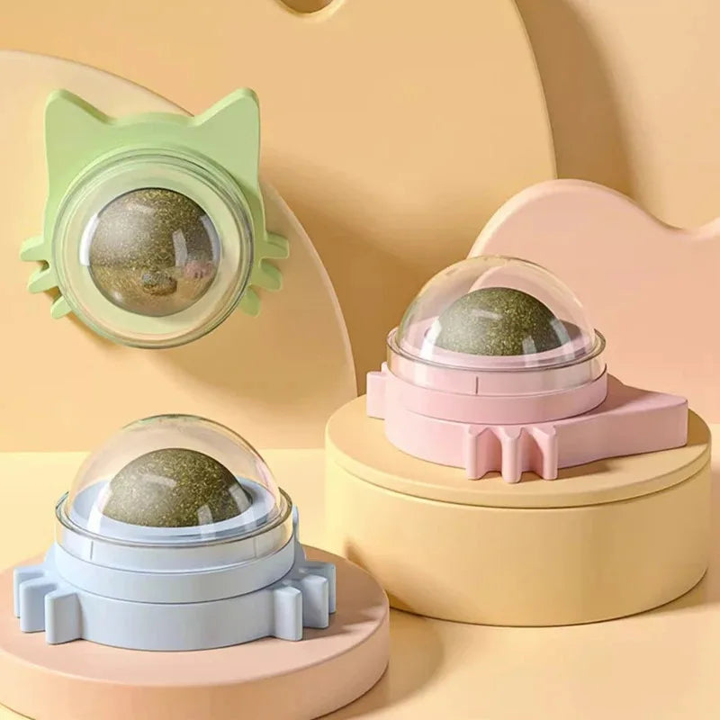 Cat catnip ball toy, in cat face shape, cute appearance.