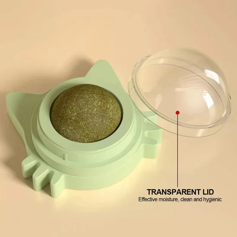 The catnip ball can be rotate by licking in shell, no need to turn it.